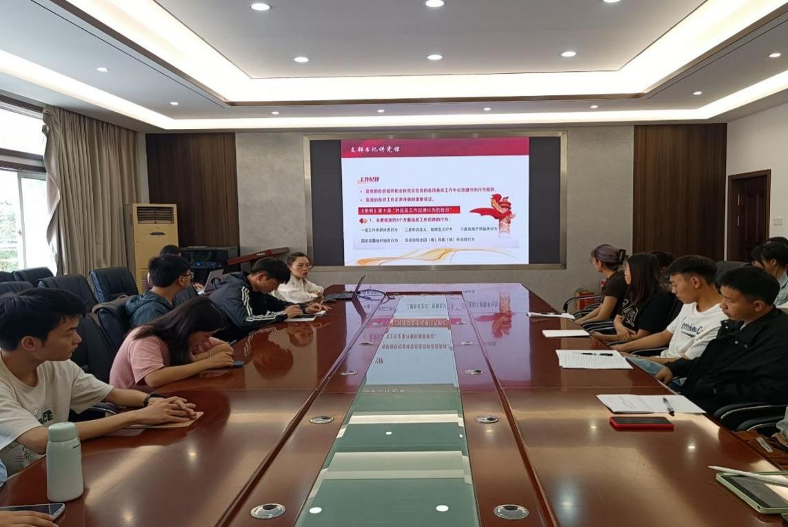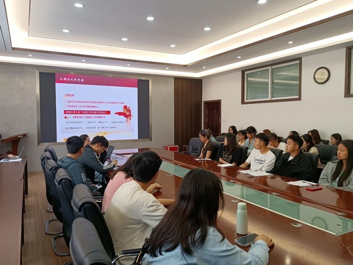 为深化党纪学习教育,提升学生党员的纪律意识,加强党的纪律建设、推动全面从严治党向纵深发展的重要举措。2024年5月30日,地理科学类学生党支部在beat365平台唯一官网会议室开展“以党纪为标尺 做守规矩的先锋”党课学习,全体党员及预备党员同志参加此次党课学习。