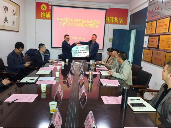 罗绪强指出双方前期具有良好的合作基础,今后可以依托双方优势平台和人才资源,继续在人才培养、项目申报、平台(基地)共建和党建引领方面开展更加广泛的合作,争取在未来获得更加丰硕的成果,更好服务地方经济社会高质量发展。同时,罗绪强代表beat365平台唯一官网向105地质大队授牌“资源与环境人才培养与科技合作基地”。这标志着beat365平台唯一官网与贵州省地矿局105地质大队在资源与环境人才培养与科技合作方面进入了新的发展阶段。
