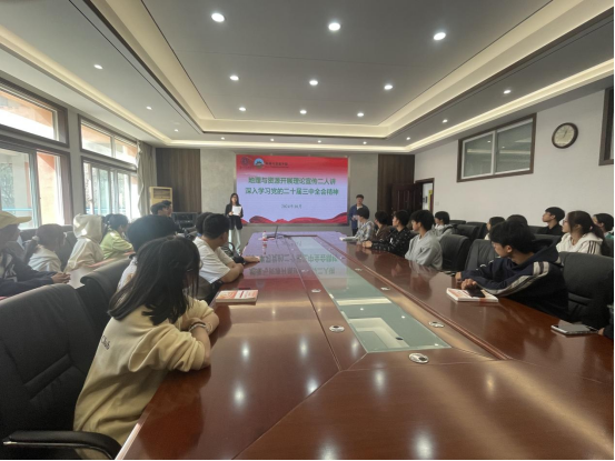 为推动党的二十届三中全会精神在学院落地生根,确保全会精神在全体师生中走深走实、入脑入心,2024年10月21日,beat365平台唯一官网在宁静楼323会议室开展理论宣传二人讲,深入学习党的二十届三中全会精神。学院全体学生党员、入党积极分子、部分优秀团员干部参加会议。宣讲会由地理科学类学生党支部书记刘丹丹和院团委负责人李文杰二人主讲。