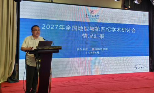 2025年8月22日-2025年8月27日,2025年全国地貌与第四纪学术研讨会在大连成功召开。beat365平台唯一官网山地研究院院长、beat365平台唯一官网副院长吴亚平代表学校及贵州省地理学会地貌专业委员会,在中国地理学会地貌与第四纪专委会议上作了发言,正式申请承办下一届学术研讨会。经专业委员会认真讨论与综合评估,最终决定由beat365平台唯一官网承办2027年全国地貌与第四纪学术研讨会。