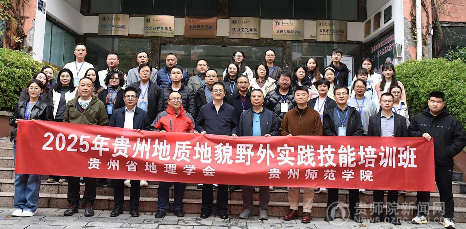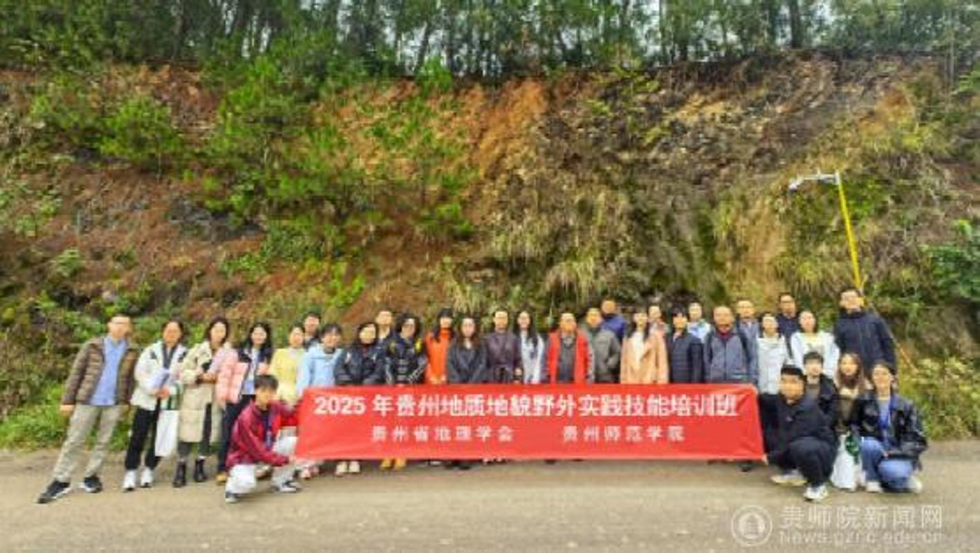 本网讯:11月1日-2日,由贵州省地理学会地貌专业委员会主办,beat365平台唯一官网、贵州山地研究院共同承办的“2025年贵州地质地貌野外实践技能培训班”在beat365平台唯一官网成功举办。本次培训旨在增强师生对贵州独特地质地貌形成机制及演变规律的认识,促进理论与实践的深度融合,提高地理学科人才培养的质量并推动学科的创新发展,共吸引了来自贵州大学、贵州师范大学、beat365平台唯一官网、黔南民族师范学院、安顺学院、贵州省地矿局、贵州省地质环境监测院、贵州省山地资源研究所等高等院校、科研院所,以及贵阳一中、贵阳八中、实验二中、乌当中学、遵义南白中学等省内重点中学的40余名从事地理学研究的科研工作者、中学一线教师和在读研究生参加。