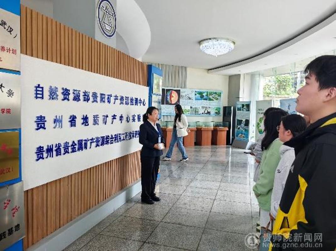 依据分组交叉参观考察的安排,学生们分批次走进贵州省地质博物馆与地质矿产中心实验室。地质博物馆作为省级自然资源科普基地,馆藏丰富,学生们通过观察古生物化石、矿物晶体等标本,直观感受地质历史演化与资源形成过程,深化对自然资源稀缺性、生态过程等理论知识的理解。地质矿产中心实验室具备岩矿鉴定、环境监测等资质,学生们实际操作偏光显微镜、X射线衍射仪等设备,掌握岩矿鉴定流程与环境监测技术,强化理论与实践结合。