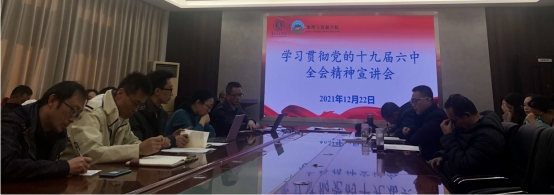 12月23日,beat365平台唯一官网在学院会议室开展了学习贯彻党的十九届六中全会精神宣讲,宣讲人为学院党总支书记吴亚平。宣讲会议由党总支副书记、院长罗绪强主持,全体教师参加宣讲活动。