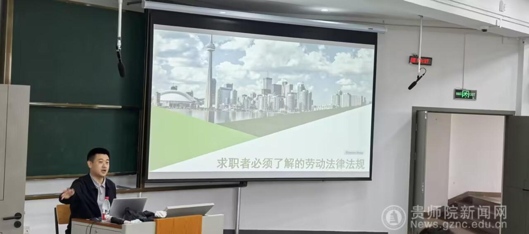 讲座现场,李万鑫从就业形势、劳动权益保障、防范就业陷阱三个方面的内容为同学们展开培训。首先,他结合全国及贵州省专科、本科、研究生的就业比例等数据,分析了不同学历层次的就业情况。他表示,当前就业形势复杂,除传统编制类教育工作外,同学们还可选择创业、基层就业等多元化路径。接着,他以《劳动合同法》中试用期规定、加班工资计算、社会保险缴纳等相关条款条例,为同学们详细解读了劳动权益保障的基本内容。他强调,初次就业的毕业生要掌握劳动合同法的重要条款,与企业签约时警惕不对等合同,确保自身劳动权益得到保障。最后,李万鑫通过分析传销陷阱、虚假招聘、培训骗局等实际案例,为同学们讲解了就业陷阱防范措施以及合法维权途径。他表示,同学们求职要通过正规渠道,优先选择国家大学生就业服务平台、高校就业网站、国聘平台等正规途径获取就业信息,避免在一些不知名的小网站或社交平台上找工作,以免陷入就业陷阱。个人权益受到侵害时,可通过法律程序申请劳动仲裁、向劳动监察部门投诉等方式维权。